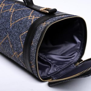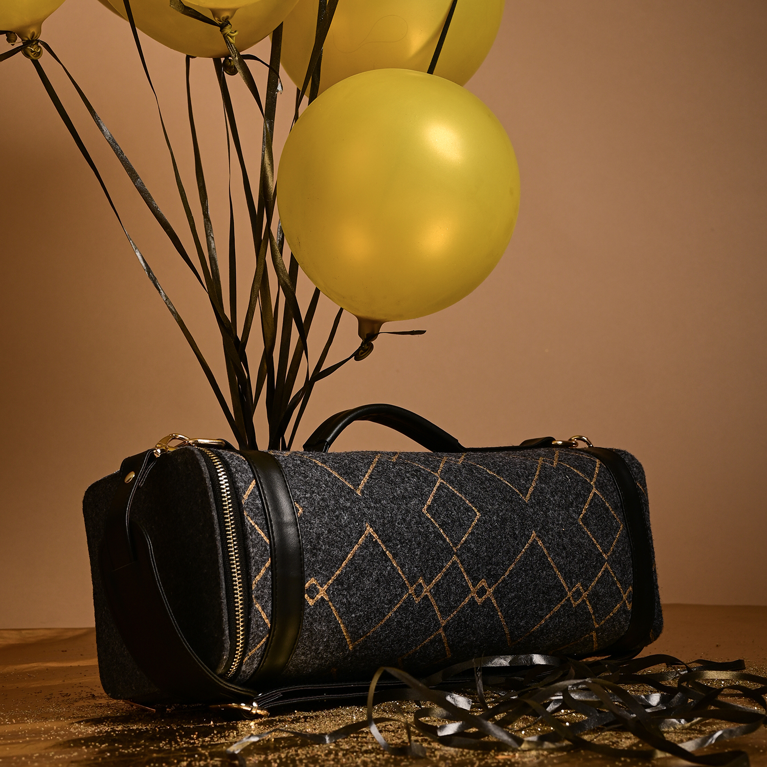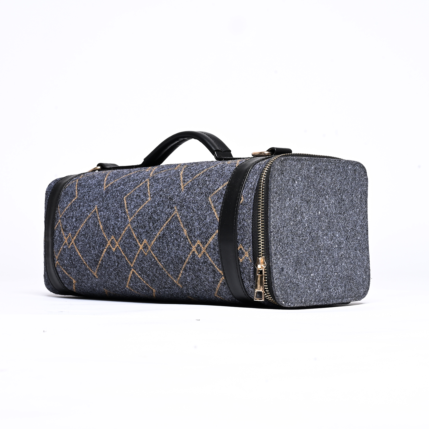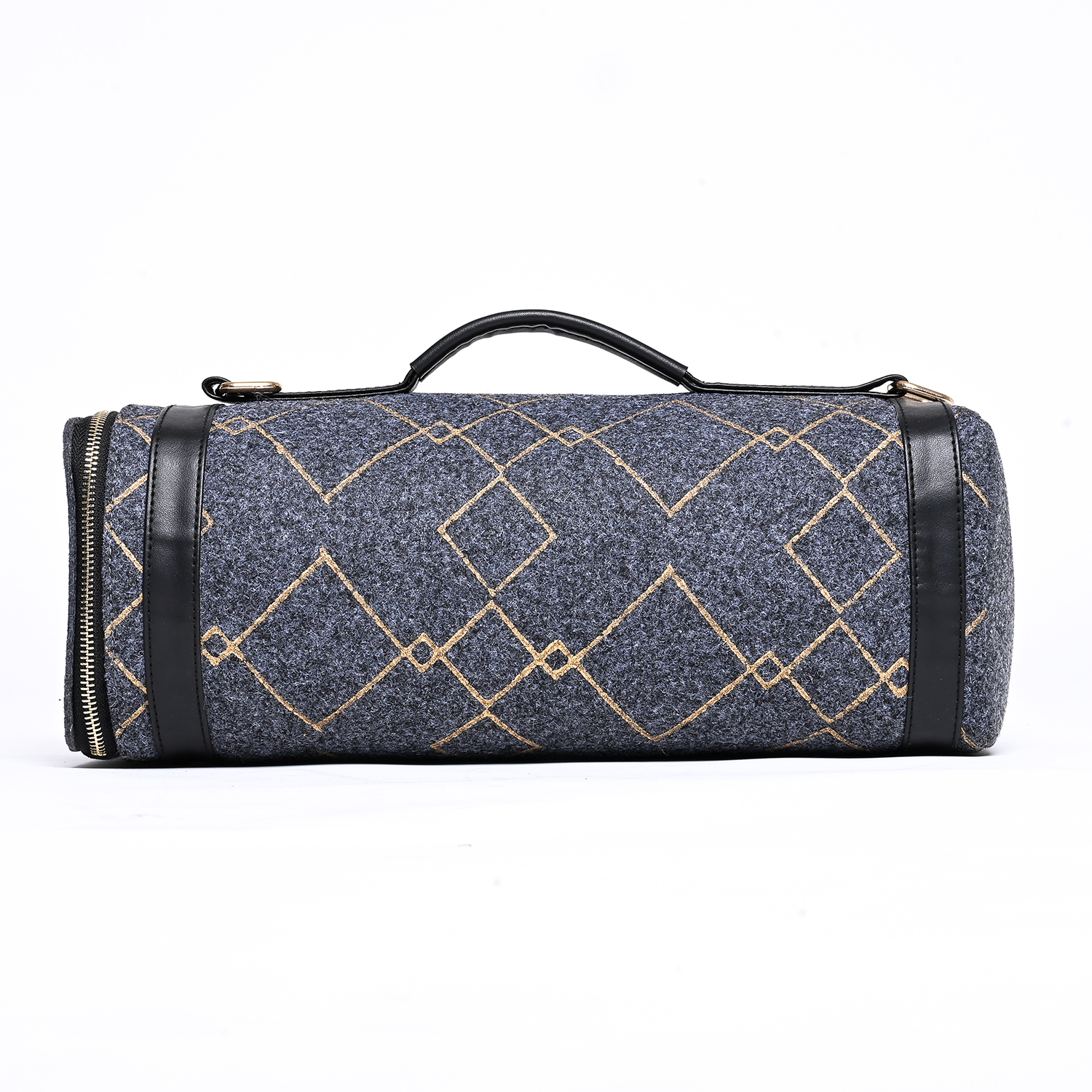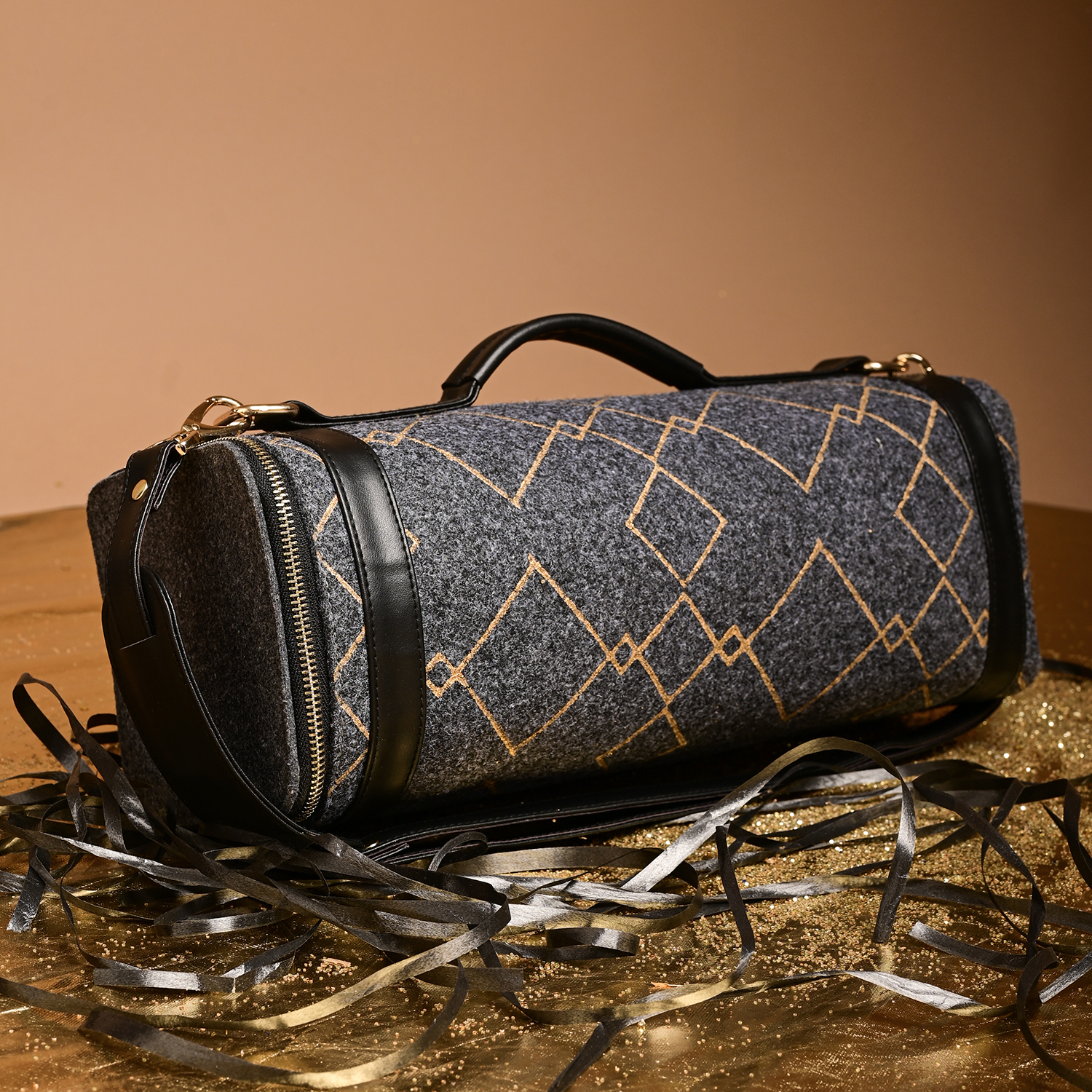 Diese kompakte Reisetasche aus Filz ist perfekt für Ihr nächstes Abenteuer. Mit einem geräumigen Innenraum und einer robusten Konstruktion ist sie die perfekte Wahl für einen Tagesausflug, einen Wochenendausflug oder eine Städtetour. Das mit goldenen Karos bedruckte Filzmaterial verleiht einen Hauch von Struktur und Stil.