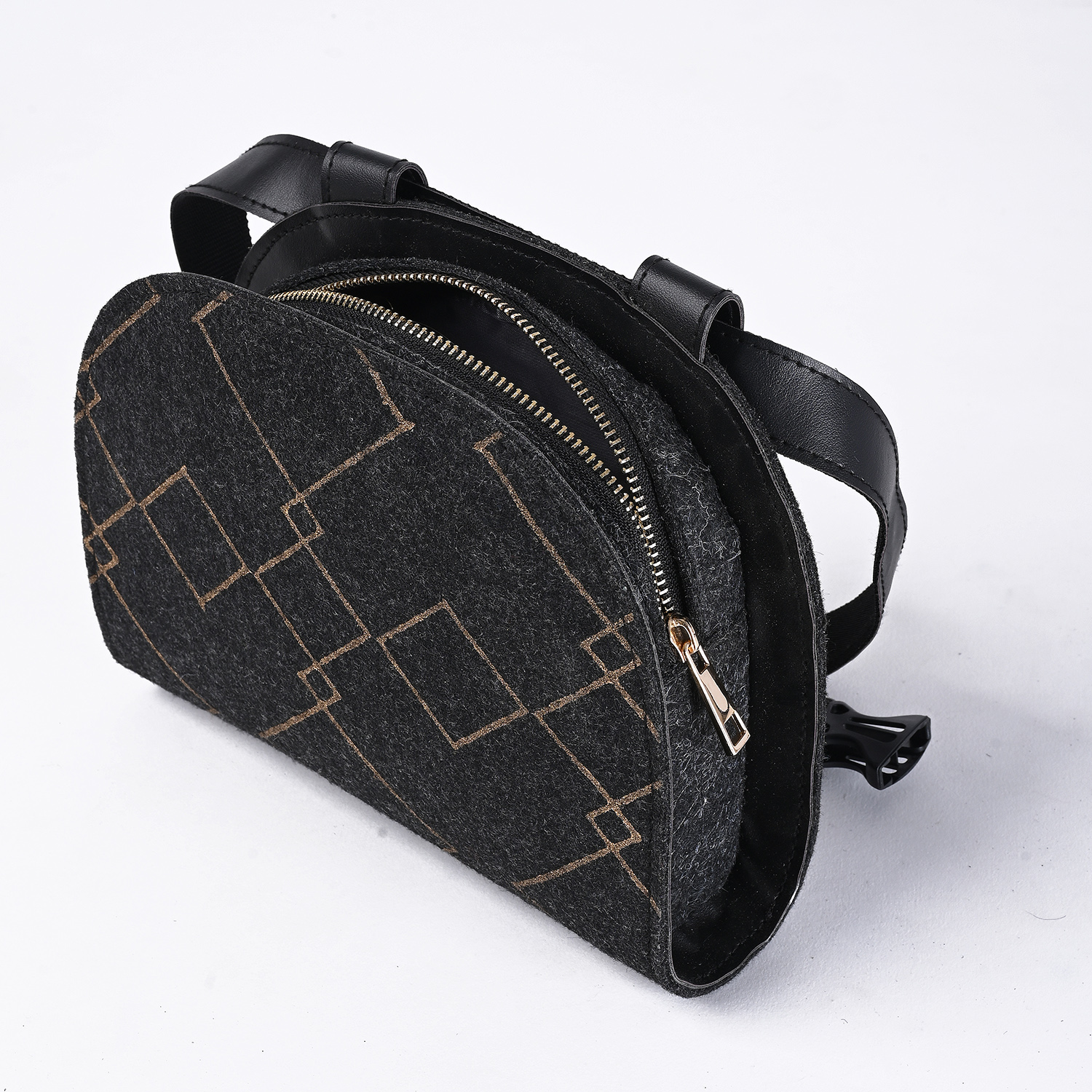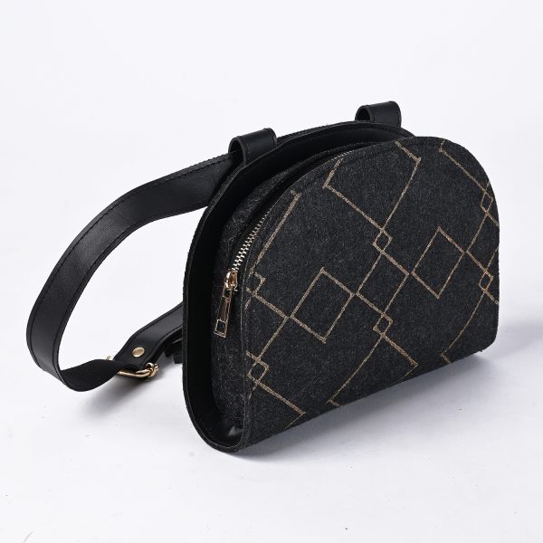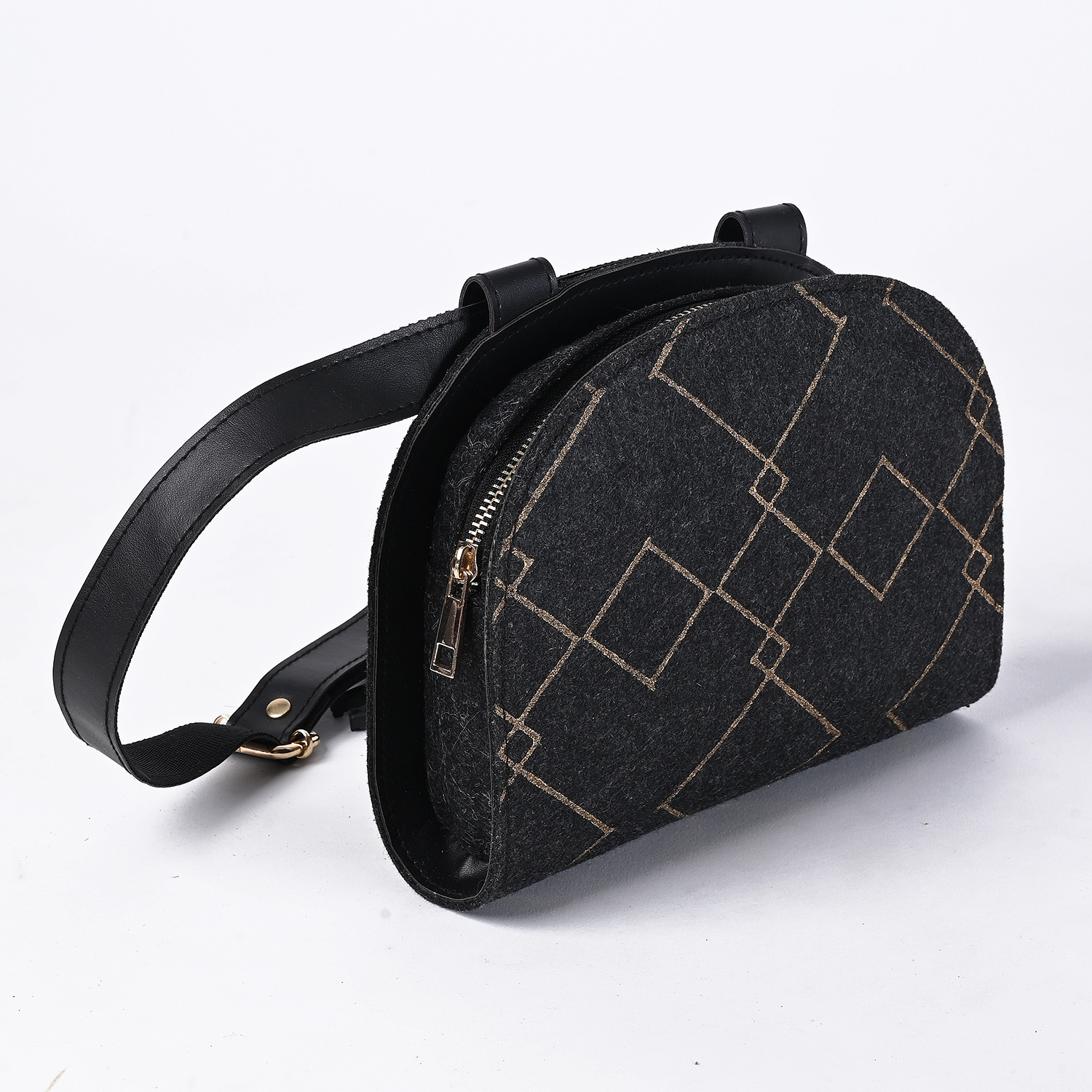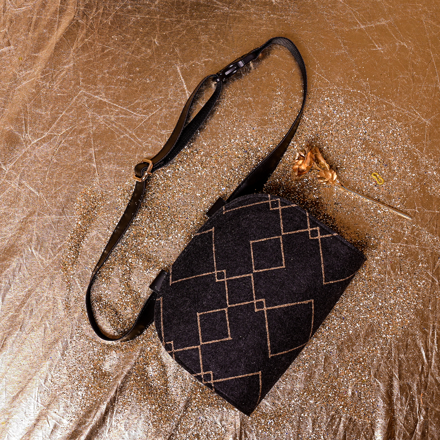 Diese elegante Gürteltasche kombiniert Schwarz und Gold für einen raffinierten und anspruchsvollen Look.