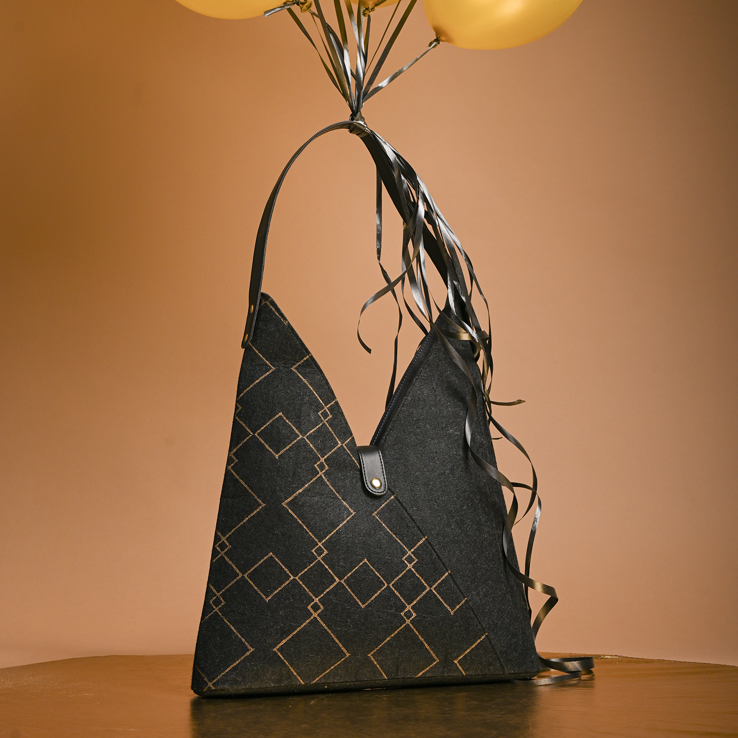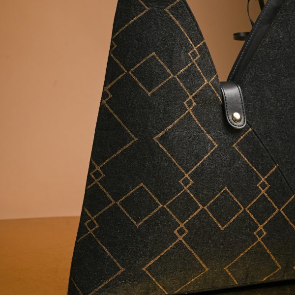 Diese Handtasche aus Ökofilz sieht schick aus und ist federleicht.