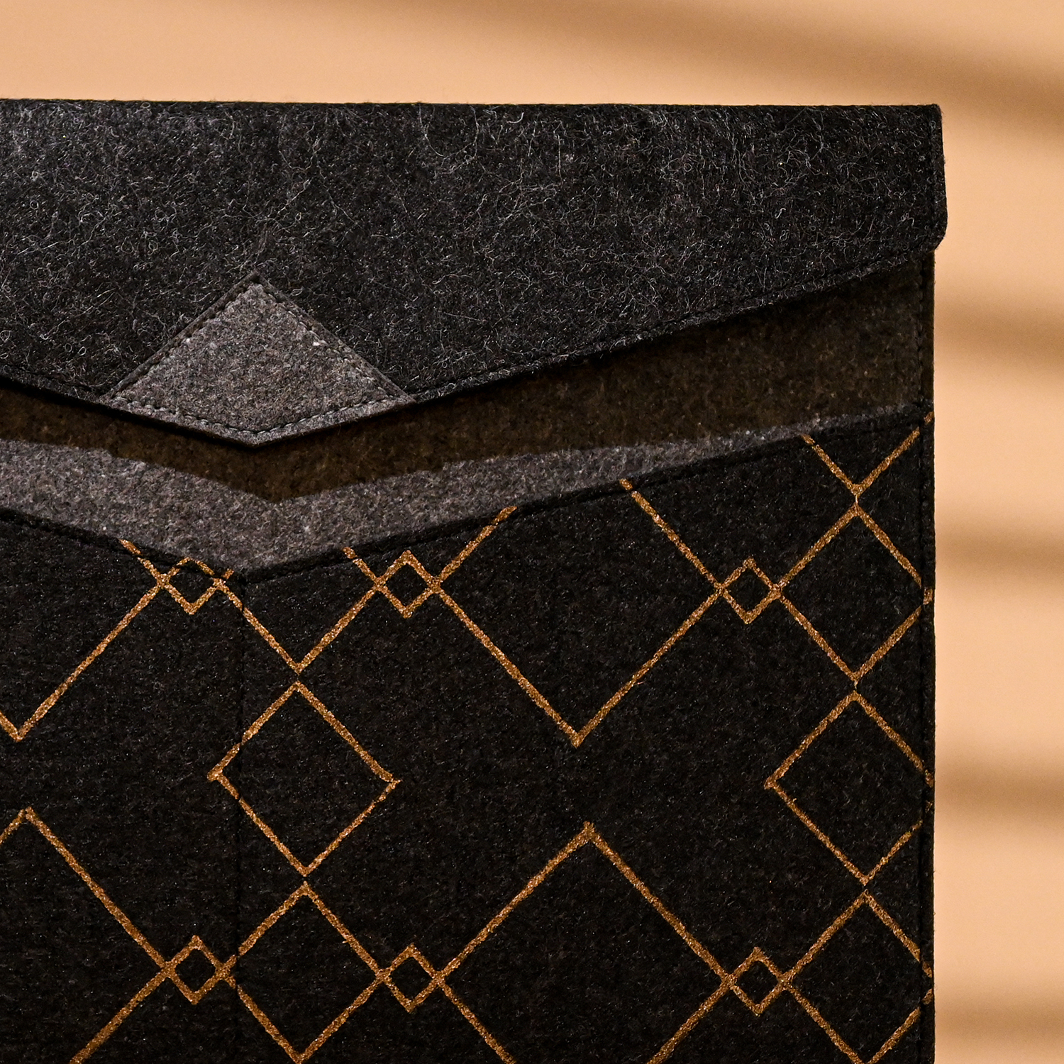 Diese Laptophülle ist in dezentem Schwarz und Gold gehalten