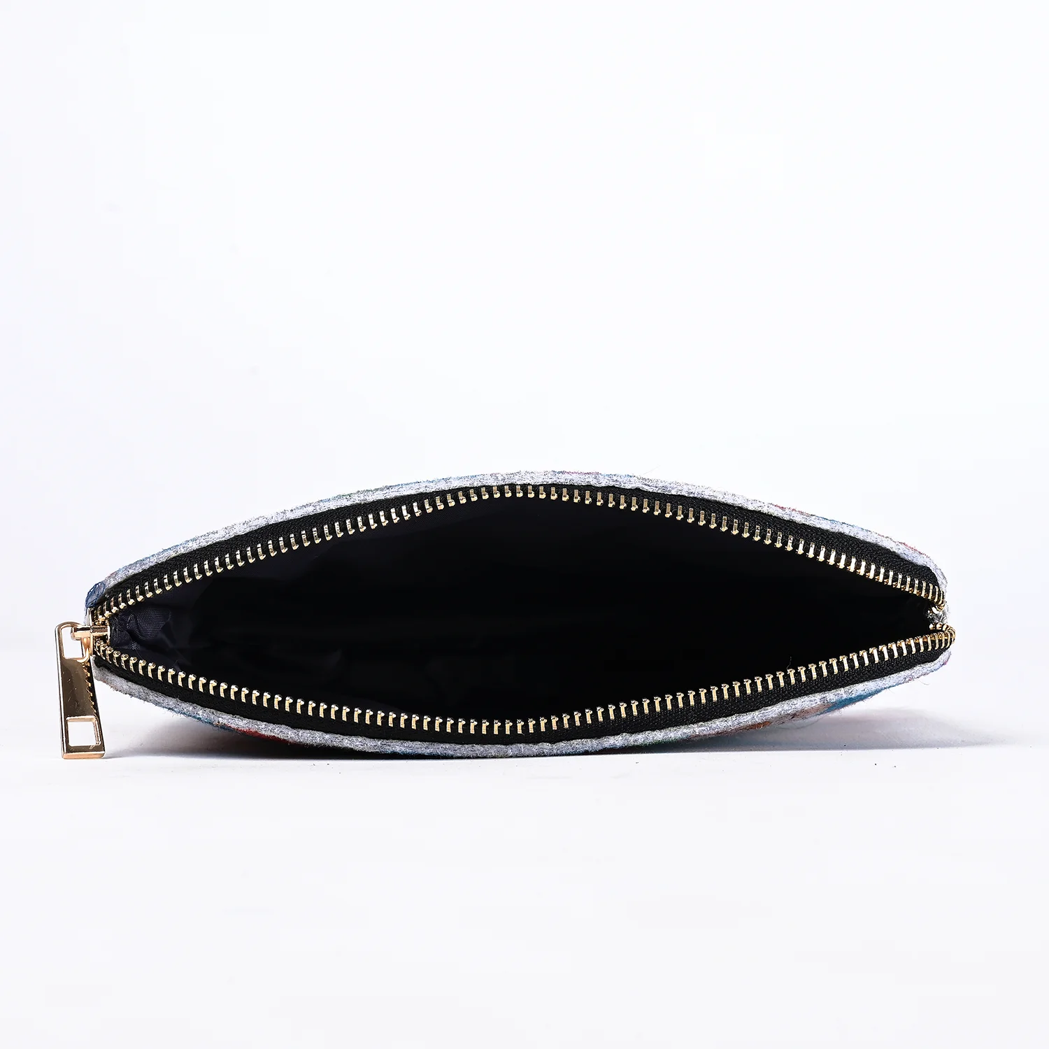 Dieser Filzbeutel mit Blumenmuster und Reißverschluss ist ein bezauberndes Accessoire.