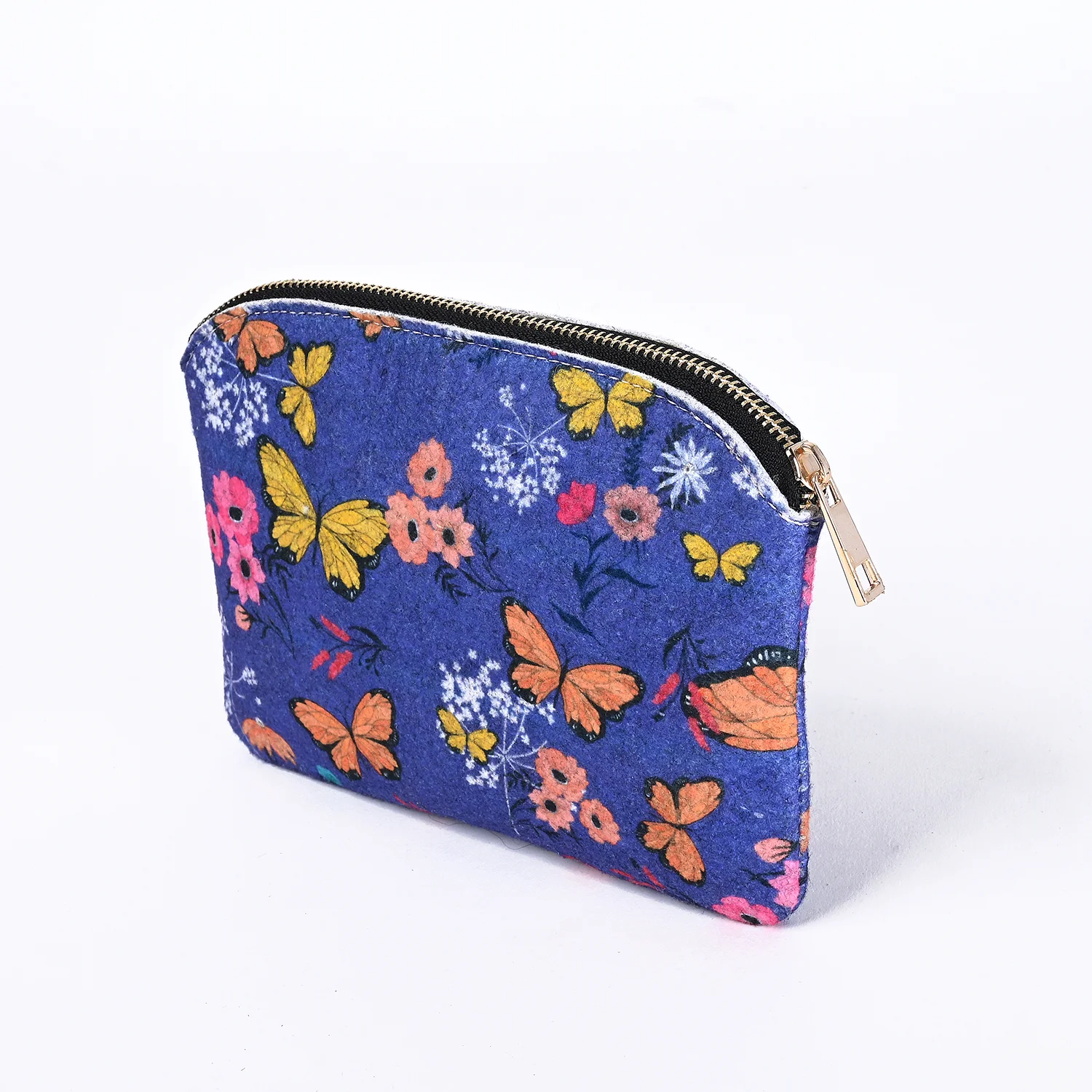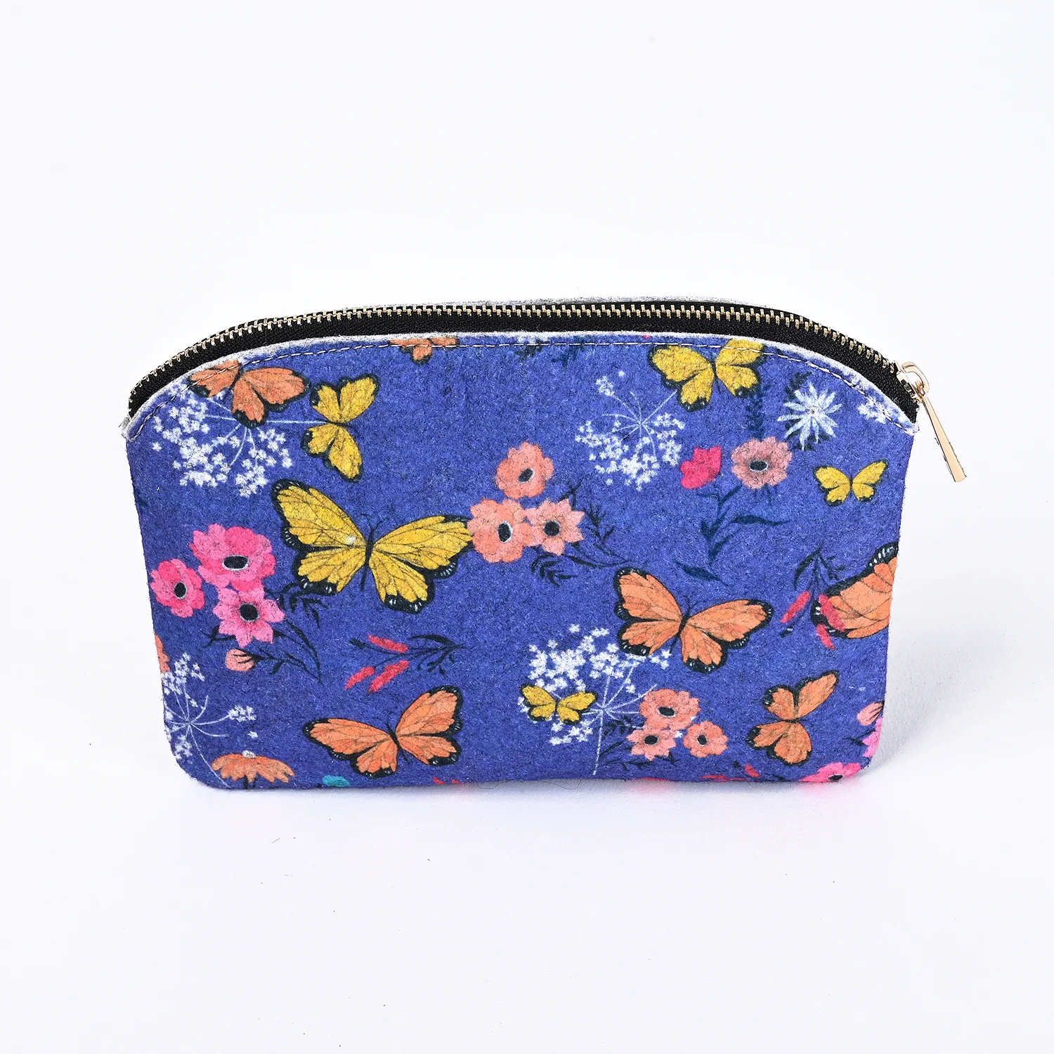 Dieser Filzbeutel mit Blumenmuster und Reißverschluss ist ein bezauberndes Accessoire, perfekt zum Aufbewahren kleiner Gegenstände. Er besteht aus strapazierfähigem Filzmaterial mit einem klassischen Blumen- und Schmetterlingsmuster und ist sowohl stilvoll als auch praktisch.