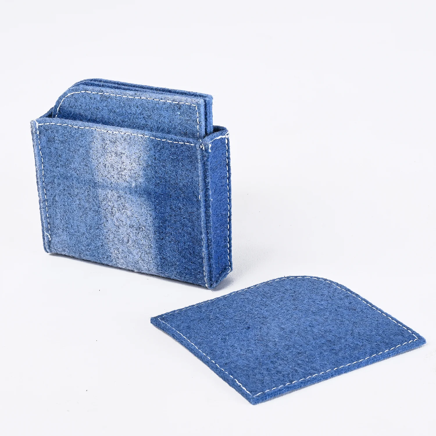 Diese Untersetzer haben eine tiefe, satte blaue Farbe, die auf jedem Tisch oder jeder Oberfläche ein Statement setzt. Ihr weiches Filzmaterial bietet eine bequeme Oberfläche für Ihre Getränke und schützt Ihren Tisch oder Ihre Oberfläche vor Kratzern und Wasserringen. Sie sind mit einem weichen Schwamm abwaschbar und wiederverwendbar.